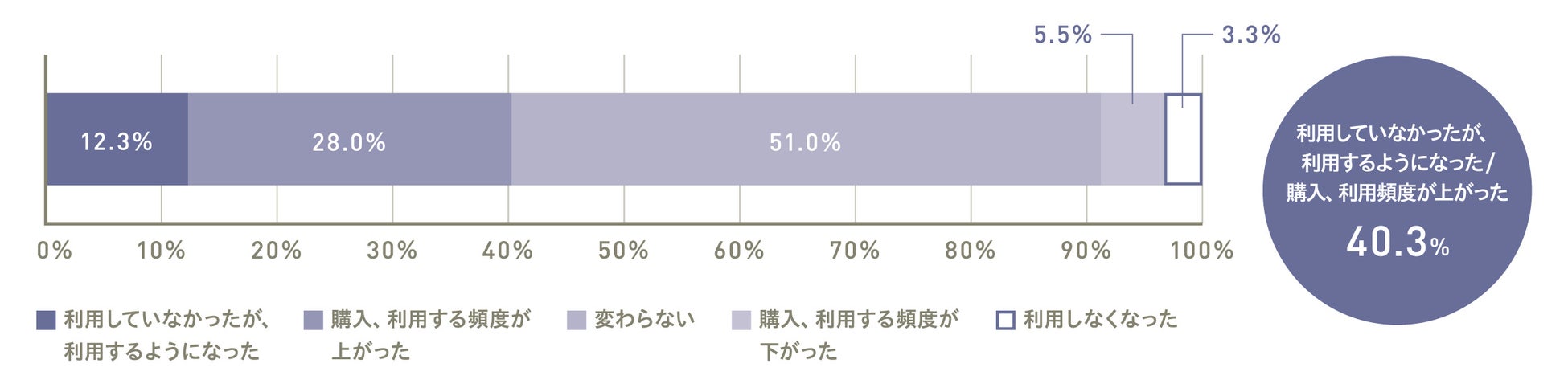 | 新型コロナウイルス流行後は、アロマを ・「利用するようになった」「購入、利用する頻度が上がった」 40.3%  |