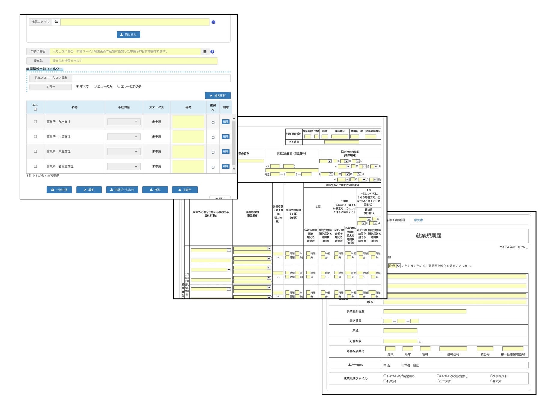 3.全支社の情報を宛先の指定なく、自動に振り分けて一括に申請する事ができる為、提出の煩わしさが簡略化できます。