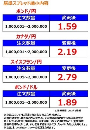SBI FXトレードが提供する外国為替証拠金取引「SBI FXTRADE」は、2013年に入り、早くも3回目のスプレッド縮小を実施、お客様からのご要望にお応え致します。