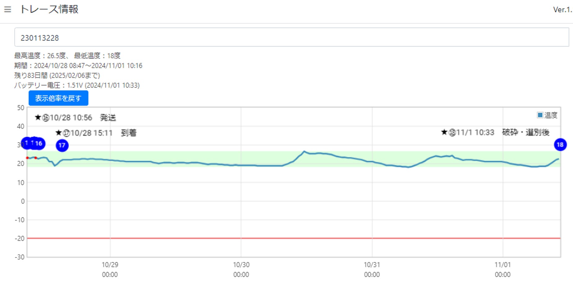 RFID温度ロガータグ「LogBiz-Thermo」を用いて、LIB輸送中の温度を継続的にモニタリングすることが可能となりました。