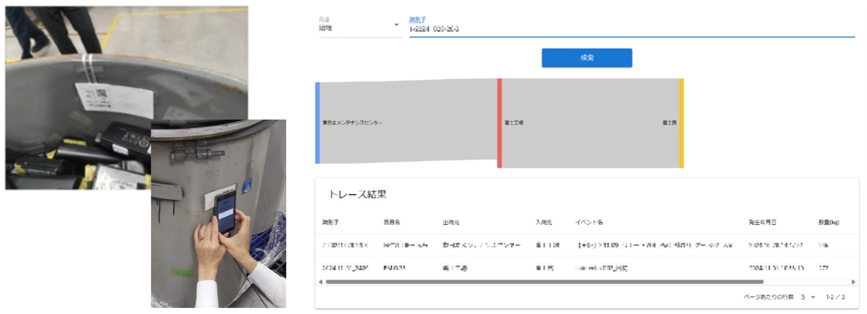 LIBを集積したドラム缶に固有のIDを付与し、輸送の日時や位置情報、温度情報、リサイクルの開始や工程ごとの日時、生産したブラックマスのIDへのひも付けなど、回収から再資源化まで全工程における履歴をクラウド上に蓄積し追跡を可能にしました。