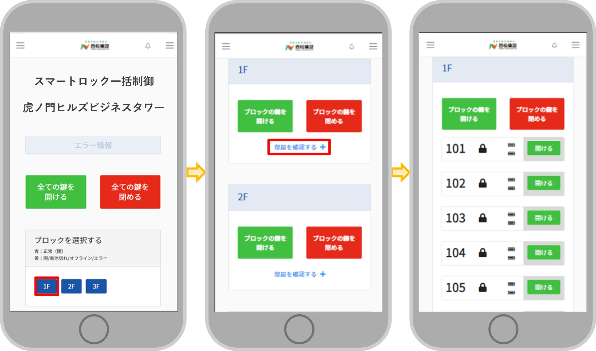 現場における鍵の開閉情報の可視化、解錠・施錠操作を省力化
