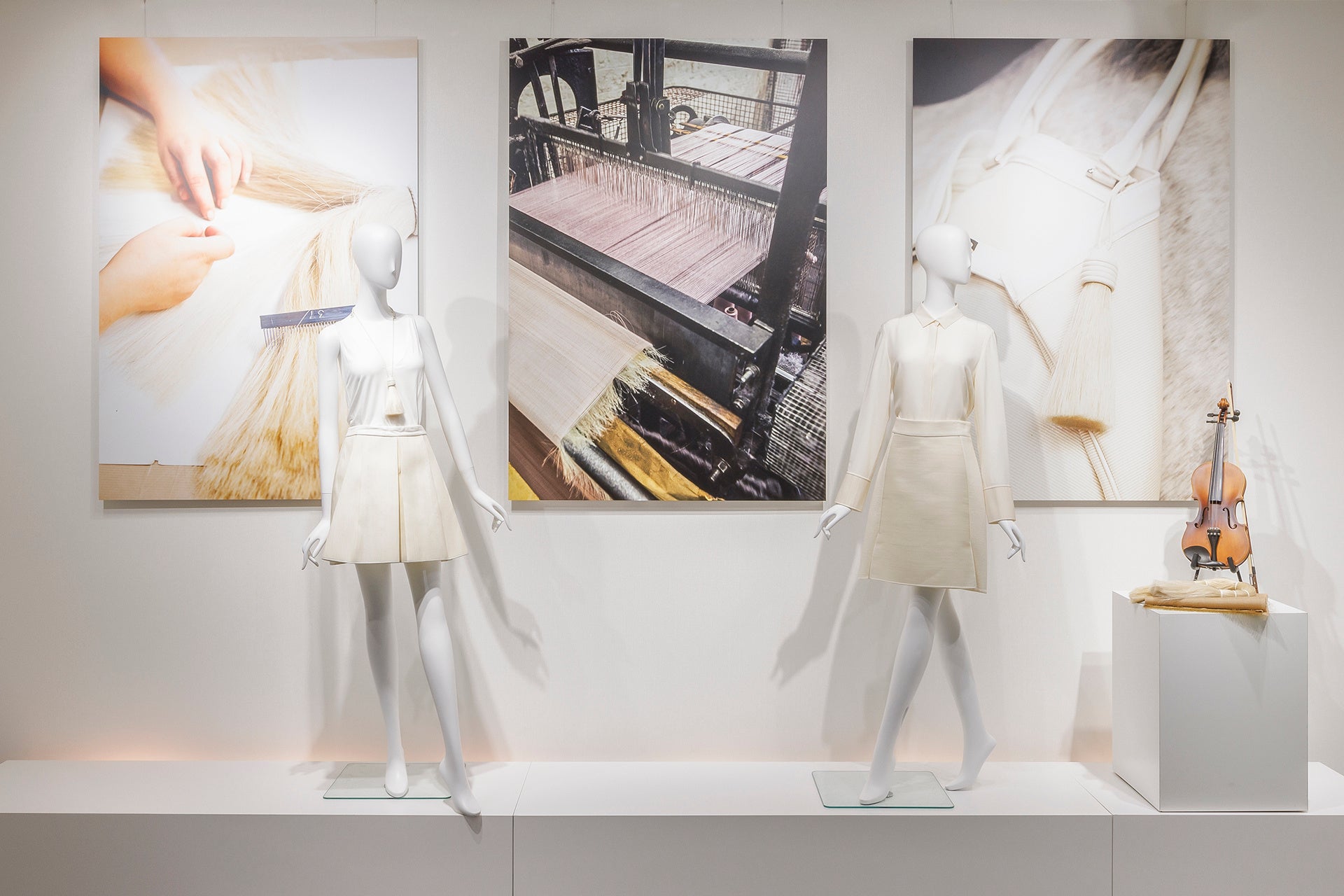 アニマルフレンドリーな馬の毛、構築的な台形シルエット。アクリスがクワイエット・ラグジュアリーを体現する特別展示を開催