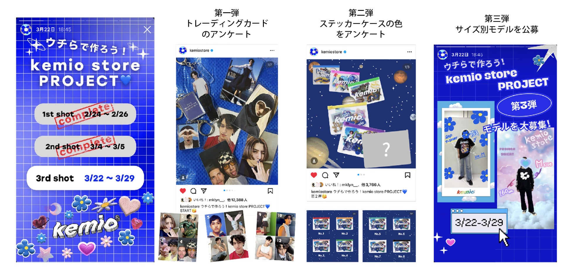 ブランドのSNSを活用し、ファンを巻き込んだキャンペーン企画「ウチらで作ろうkemio store」を実施いたしました。商品企画のアンケートやWEBサイトの身長別モデルの公募をInstagramで行うなど、ファンと共創するブランド作りを実現しています。