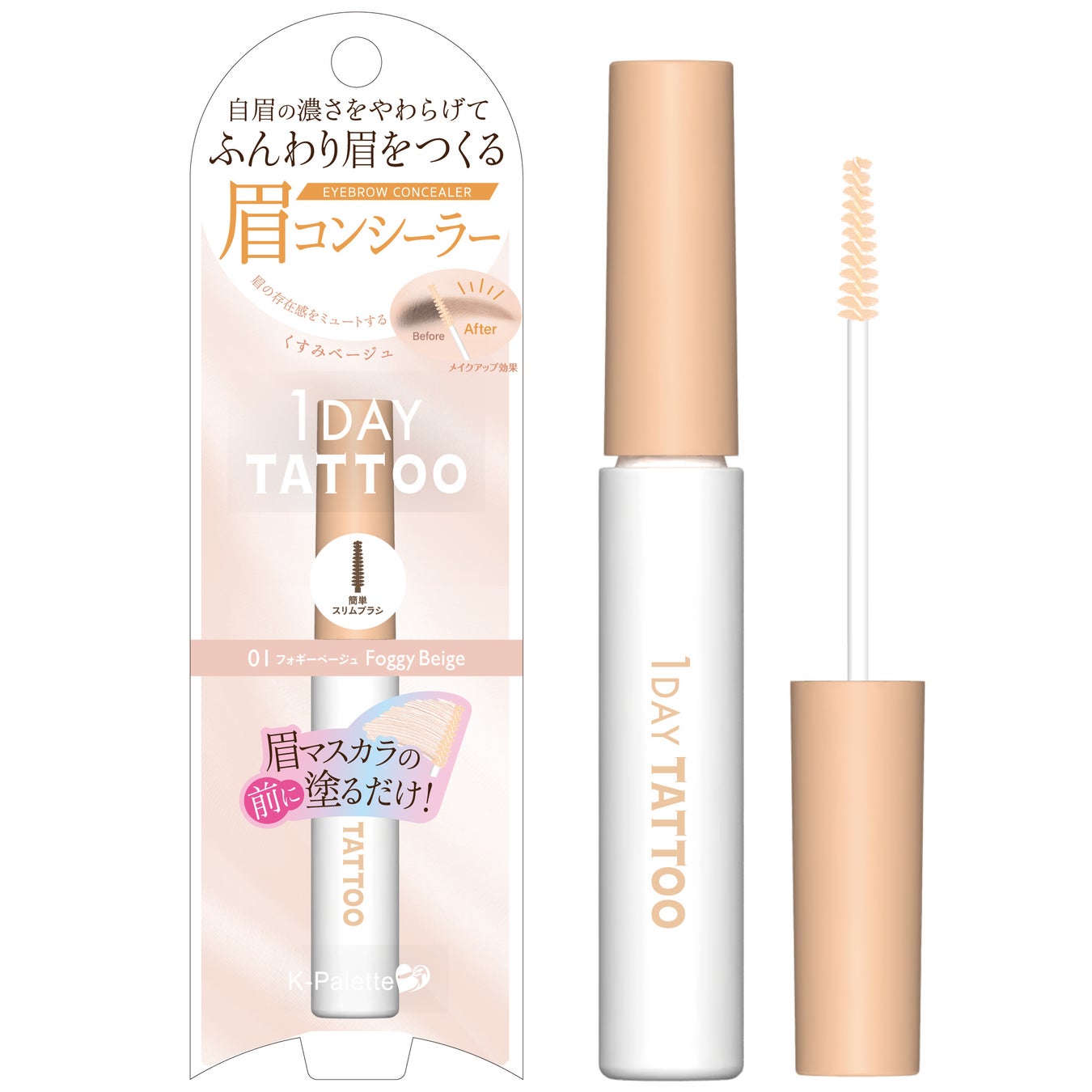 眉マスカラの前に『K-パレット ふわ眉コンシーラー』をひと塗りするだけで、ふんわり淡く自眉の濃さをやわらげます。シルバーパールを配合したくすみベージュカラーが眉マスカラの色味を引き立て、ふんわり垢抜けた眉の印象に仕上がります。