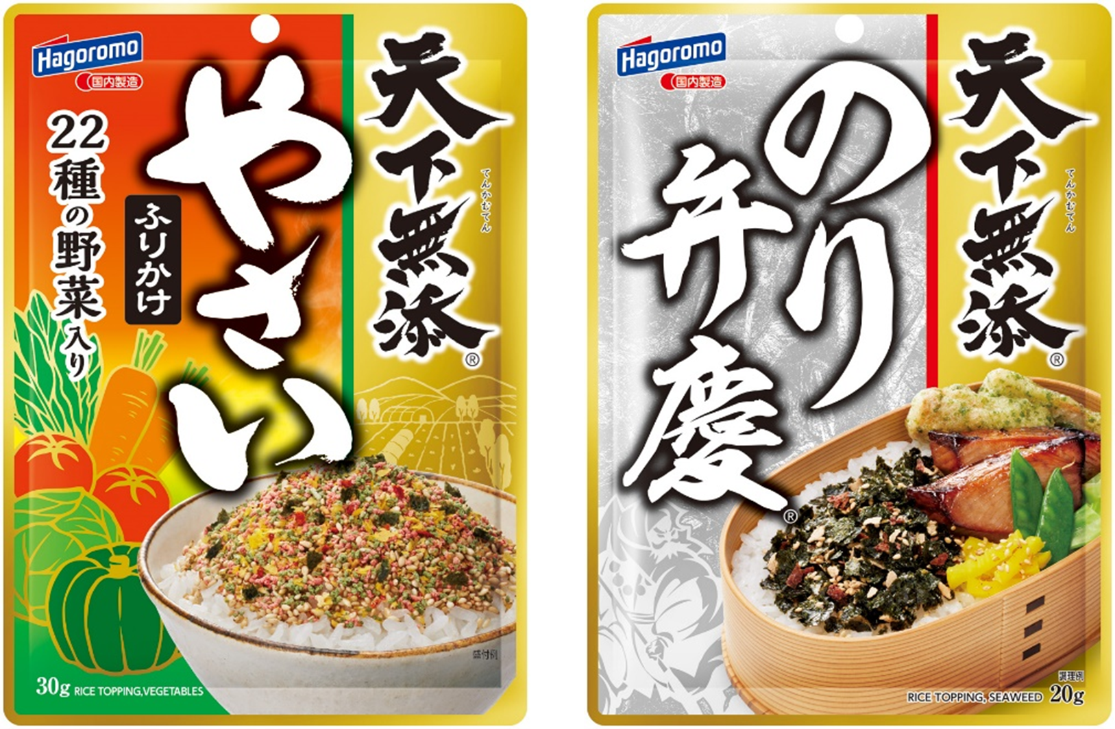 はごろもフーズ株式会社(本社:静岡県静岡市 社長:後藤佐恵子)は、『天下無添』ふりかけシリーズに22種類の野菜を使った「天下無添やさいふりかけ」と、着色料・甘味料不使用の「天下無添のり弁慶ふりかけ」の2種を発売します。
