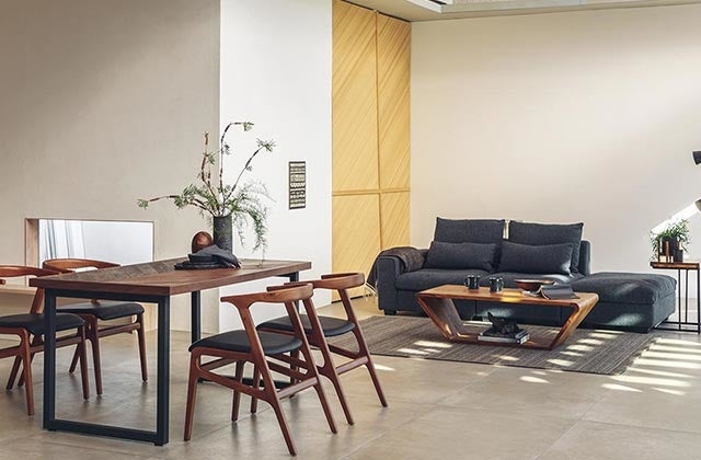 ソファーひとつ、ダイニングテーブルとチェアを置く、家具と暮らすことで生活にゆとりと潤いが生まれる。
