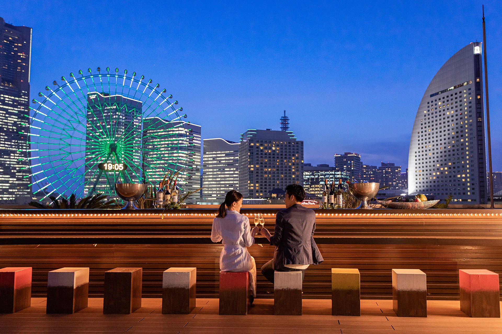 みなとみらいの海と夜景を一望できるグランドオリエンタルみなとみらいの屋上ルーフトップテラスで、開放感あふれる空間と心地よい夜風が非日常のひとときを演出します。大人のためのラグジュアリーな夏の夜に最適です。