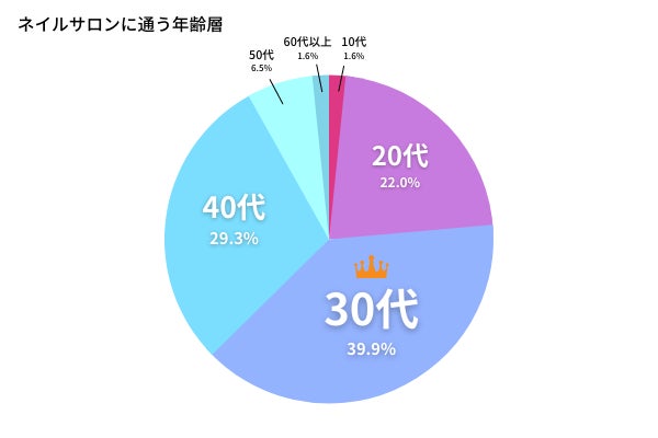 また、ネイルサロンに継続的に通う為には毎月一定の出費がつきものです。その為、金銭面で余裕が出てくる30代〜40代の層が多くなったようです。