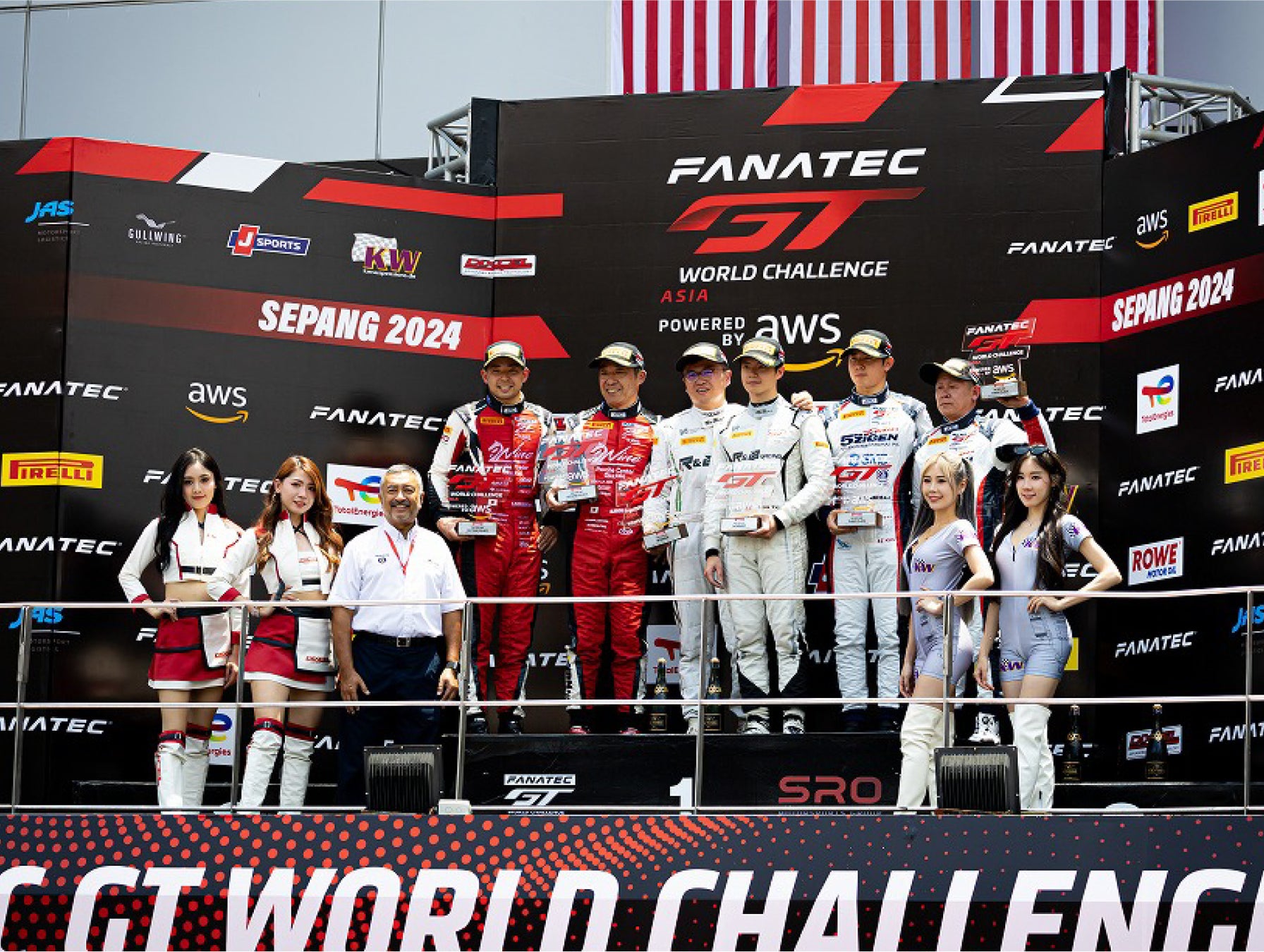 「GTワールドチャレンジ・アジア」は日本を含めたアジア各地を舞台に、全6ラウンドで争われる世界的なカーレースです。2024年4月20日から21日にかけて第1ラウンドがセパン・インターナショナル・サーキット(マレーシア)で行われ、金丸選手所属のTEAM 5ZIGENは初参戦を果たしました。初日のレース1では荒天やさまざまなアクシデントに見舞われながらもクラス4位(総合18位)、翌日のレース2でもクラス3位(総合11位)と順位を上げ、最後は表彰台へのぼる素晴らしい結果を収めました。第2ラウンドは5月11日・12日に、チャン・インターナショナル・サーキット(タイ)で行われます。第1ラウンド以上の活躍を期待し、今後も“たかの友梨”は金丸ユウ選手を全力で応援してまいります。