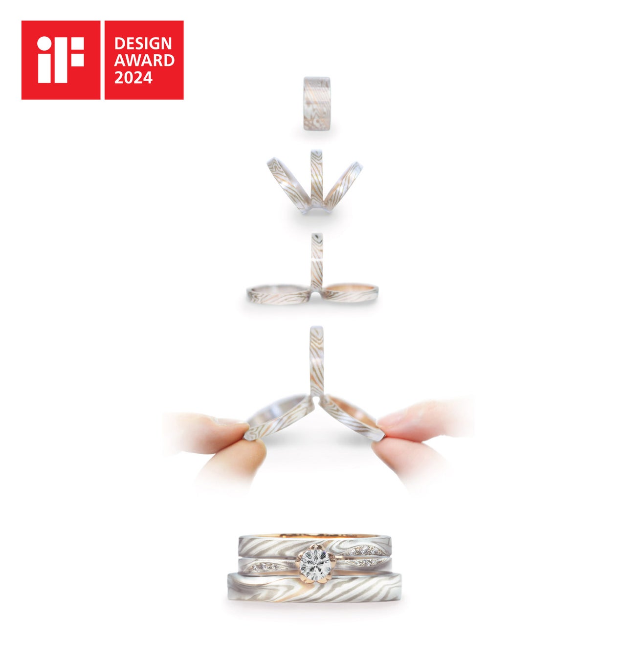 日本の伝統技法「 木目金(もくめがね)」(*金属の色の違いで木目調の文様を生み出す技術)を用い、全国でブライダル・ジュエリーを展開する株式会社杢目金屋(東京都渋谷区/代表取締役 髙橋正樹)の「つながるカタチ結婚指輪・婚約指輪」が、世界三大デザイン賞の一つ、ドイツの「iF DESIGN AWARD 2024」を受賞。