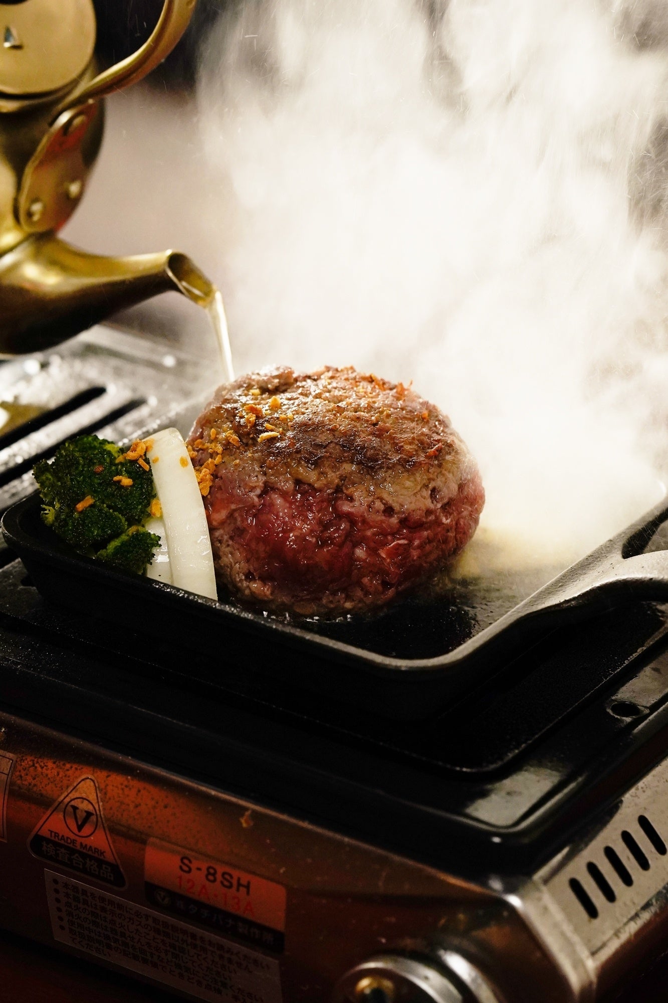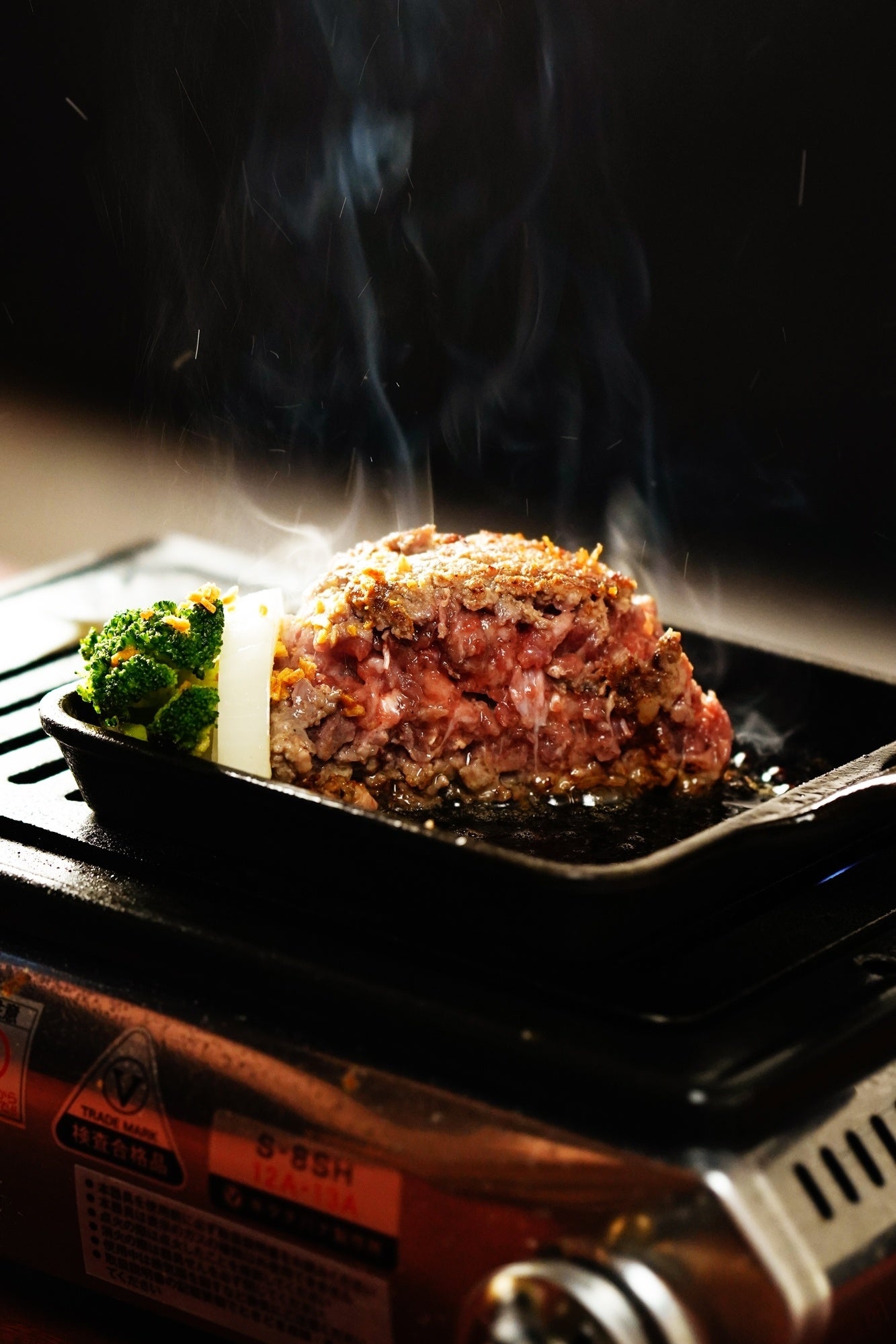 ④あつあつの鉄板と一緒にご提供しますので、お好みに焼き加減でお召し上がりください。