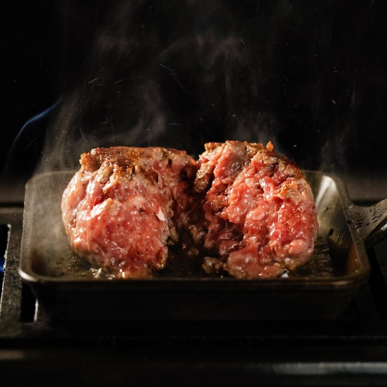 和牛100%を使用した最高品質のハンバーグを、あつあつの鉄板と一緒にご提供いたします。ランチ営業は予約<なし>でお楽しみいただけます。