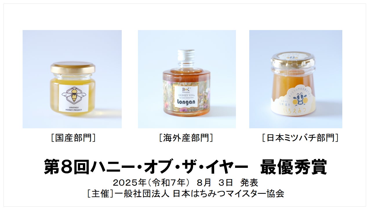 はちみつの資格を運営する、一般社団法人日本はちみつマイスター協会(東京都中央区、代表理事:河村千影)は、はちみつの日(8月3日)に合わせてはちみつ資格取得者・はちみつ好きが最もおいしいはちみつを選ぶコンテスト「第8回ハニー・オブ・ザ・イヤー」を開催。
