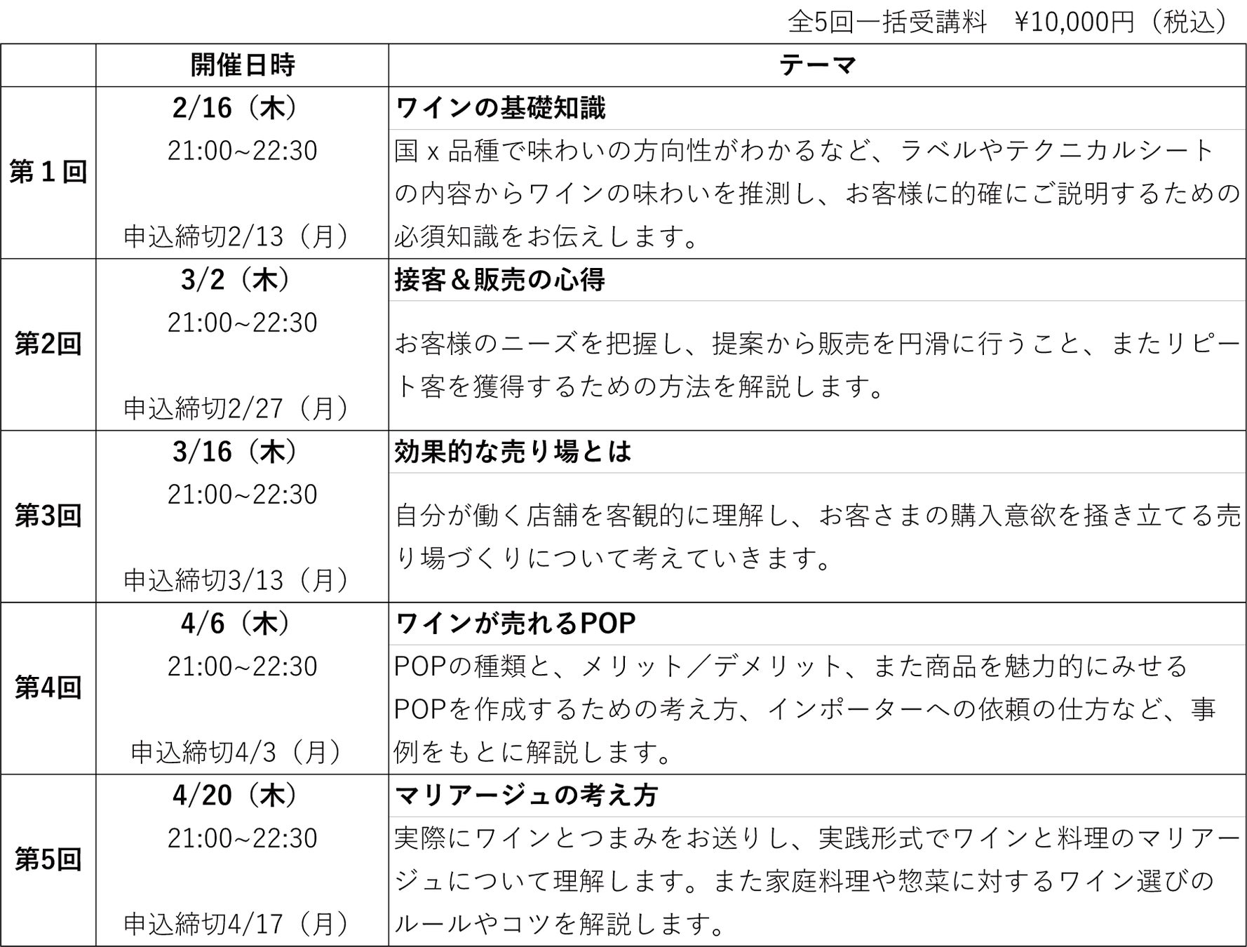 ワイン販売 基本スキルUPコース 2023年2月16日(木)開講