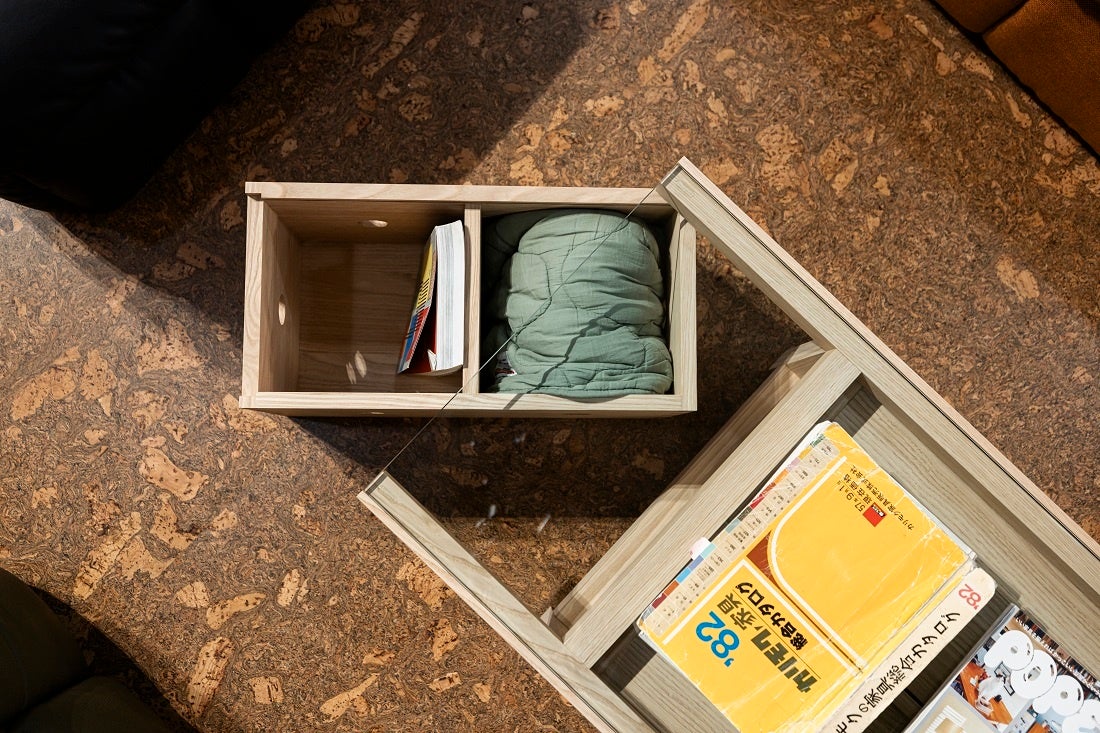 本ブランドの開発過程では、1つのアイディアが常に複数のアイテムへと展開されてきました。例えば、「Glass CMPT Table」は、通常のコーヒーテーブルとしての機能はもちろん、天板下に4台の「Apple Box」がぴったりと収まるように設計されており、コーヒーテーブルとしての用途と収納の機能を両立します。ニューヨークの限られた居住空間を前提とした、スペースを有効に活用できる機能性あふれるデザインを、当社の精緻なモノづくりの技術によって具現化しました。