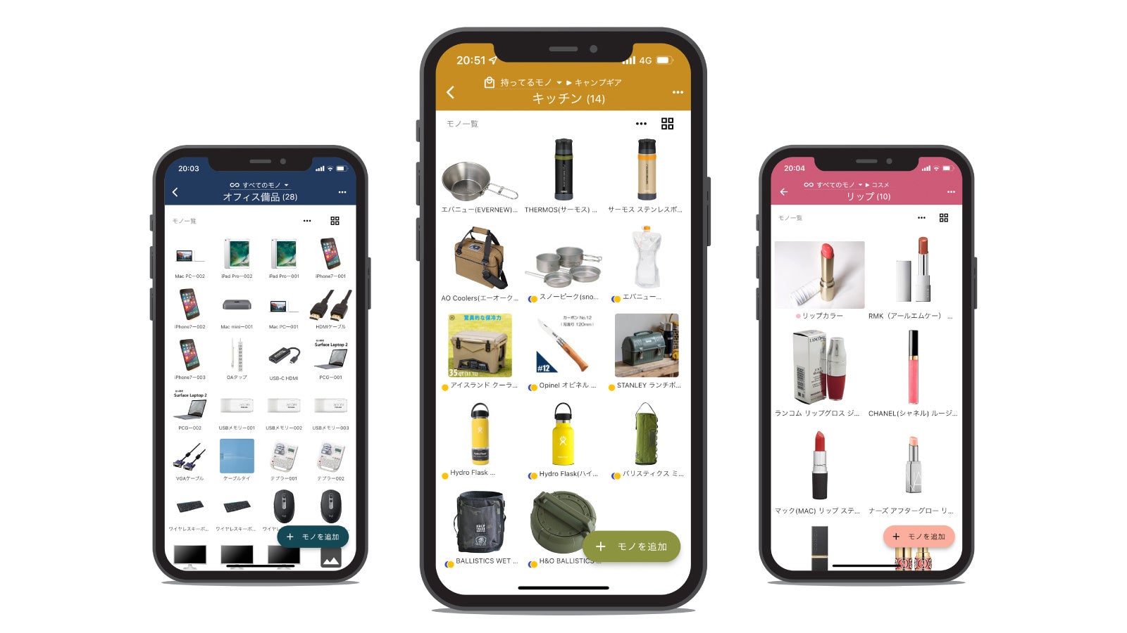 最新バージョンではユーザーの皆様のご要望にお応えし、持っているモノと欲しいモノを写真の一覧でも確認できる機能を実装しました。アイテムの写真を一覧表示できるようになり、ファッション、インテリア、コスメ、アウトドアなど、あらゆるモノの管理がさらに便利になりました。