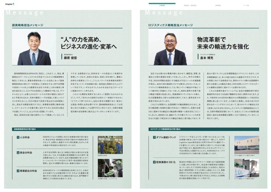 今回の統合報告書では、中期経営計画(2023年3月期~2025年3月期)2年目の成果を中心に、鴻池運輸をよりご理解いただけるよう各事業のビジネスモデルや強みを記載するとともに、非財務指標である「環境」「人」「技術」の取り組みを統合的にご紹介しています。