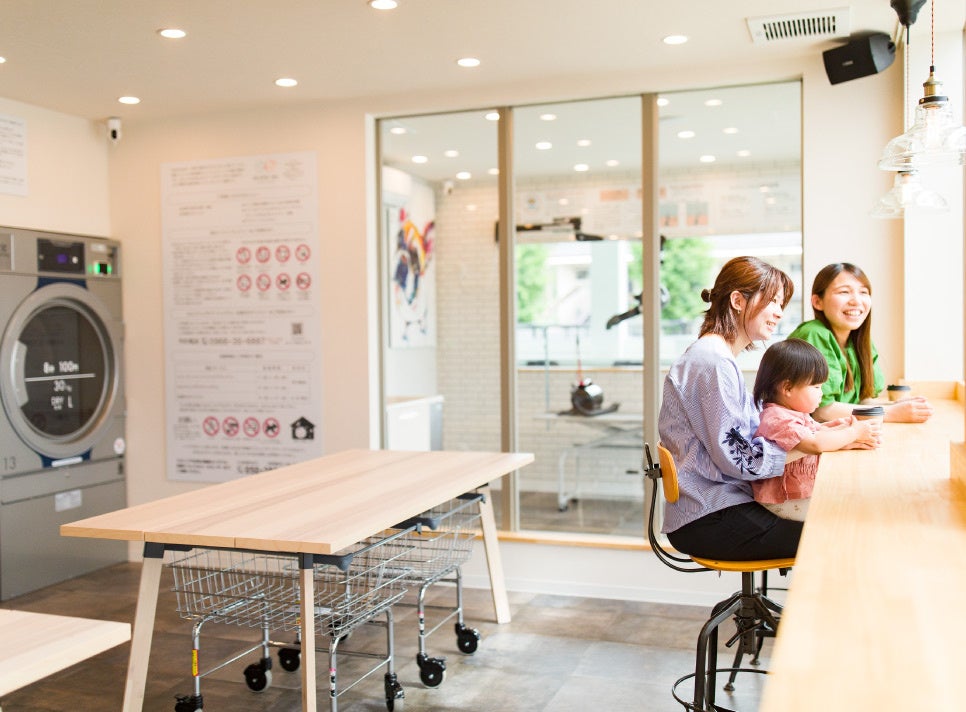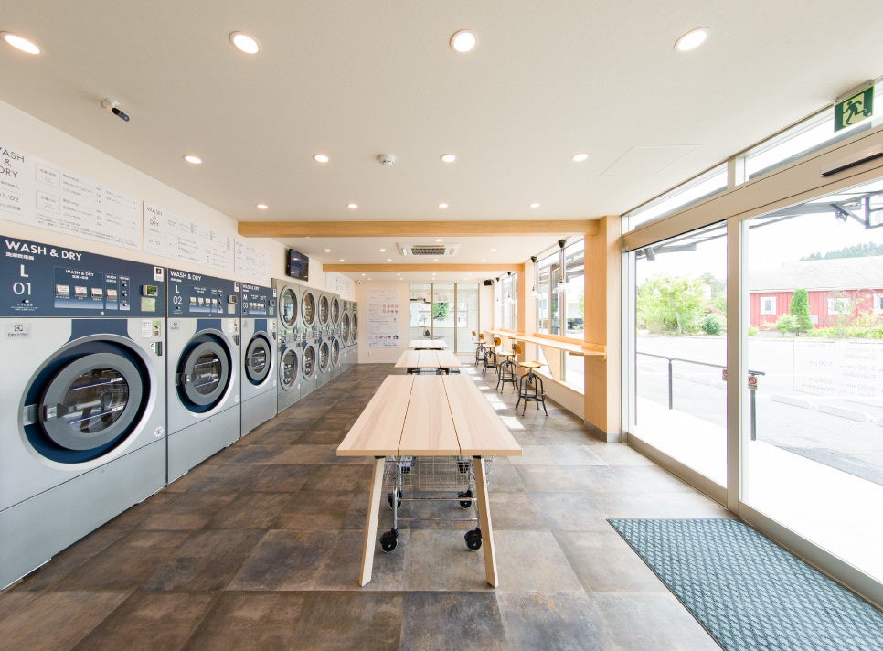 オーガニックカフェのような清潔感と開放感が感じられるお店です。横1列に並んだランドリーは統一感バツグンでとてもスタイリッシュ。スタッフの方がいる時間は使い終わったランドリーは常に清掃し、次に使う方が安心して使えるよう心掛けています。
