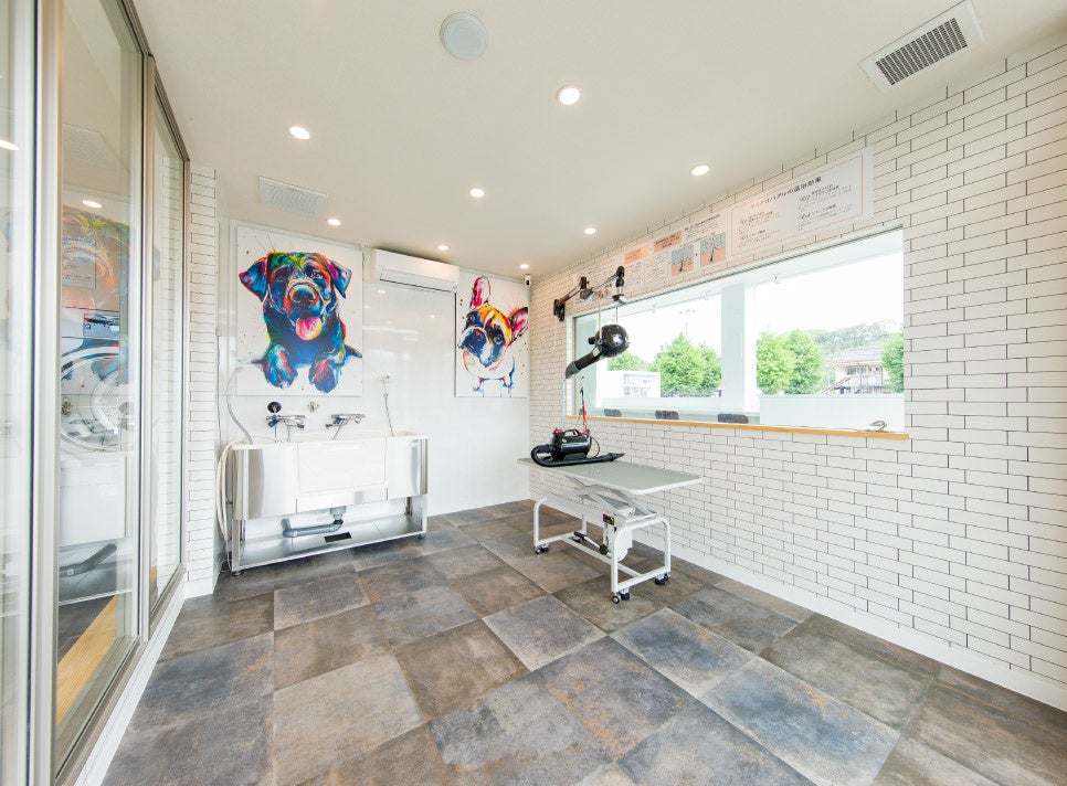 ペットシャワーにはターレス社製「マイクロバブル・ウォッシュ・システム(https://microbubble.jp/)」を導入。皮膚病に苦しむペットに抜け毛の減少や皮膚のただれの改善、ニオイの軽減効果が得られ、マイクロバブルの微振動がマッサージの役割を果たしリラックス効果にもつながります。