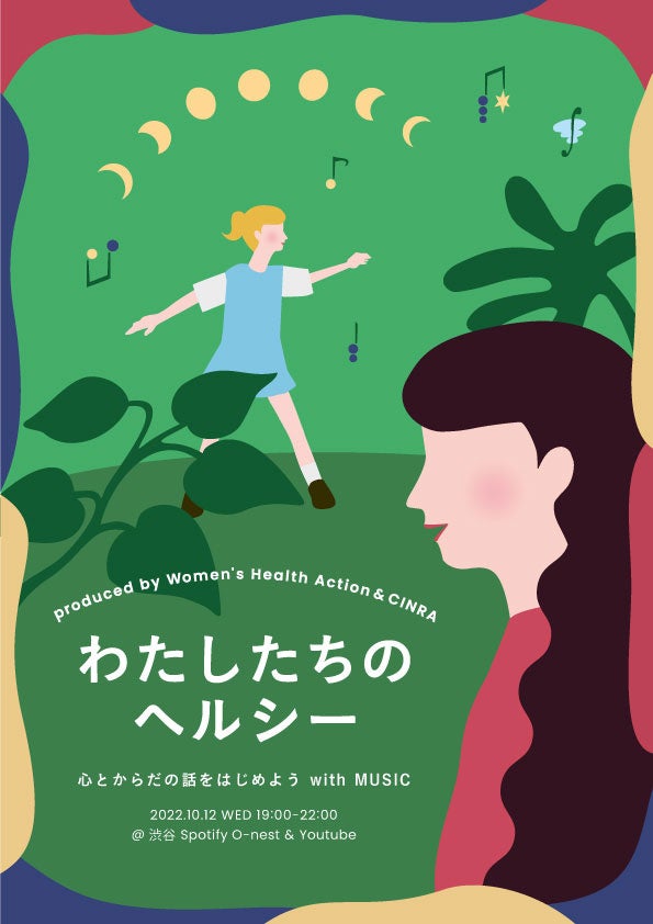 現代日本における女性の健康推進の必要性とその課題について考えるための取り組みを行なっているWomen’s Health Action実行委員会(代表 慶應義塾大学名誉教授・元内閣官房参与 吉村 泰典)と、クリエイティブな意思を届けるウェブメディア『CINRA』の運営や各種ウェブメディアの構築などを手がけるCINRA, Inc.(本社:東京都世田谷区、代表:杉浦太一 https://www.cinra.co.jp )が、ともにプロデュースする『わたしたちのヘルシー 心とからだの話をはじめようwith MUSIC(in Oct. 2022)』が、このたび2022年10月に開催決定。イベントの詳細と、出演アーティストをお知らせいたします。