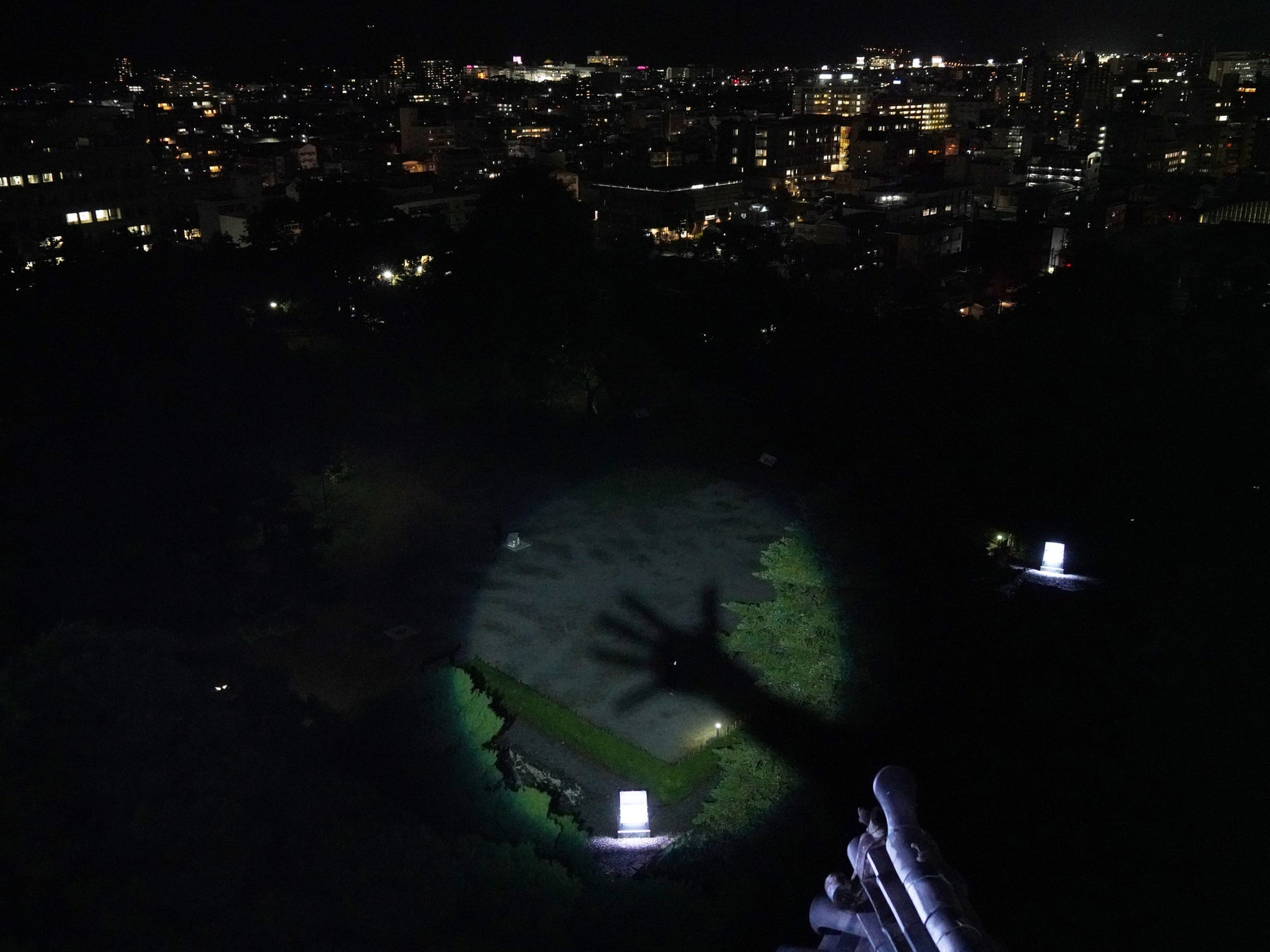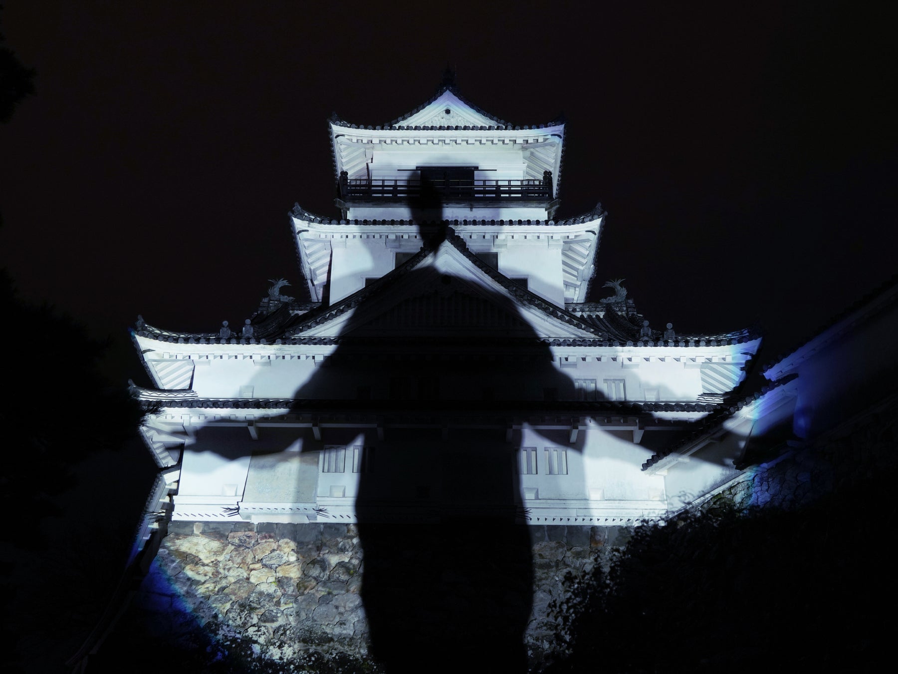 天守最上階から、夜景・会場全体を見渡しながら下界に巨大な影をおとす、城主のいたずら。