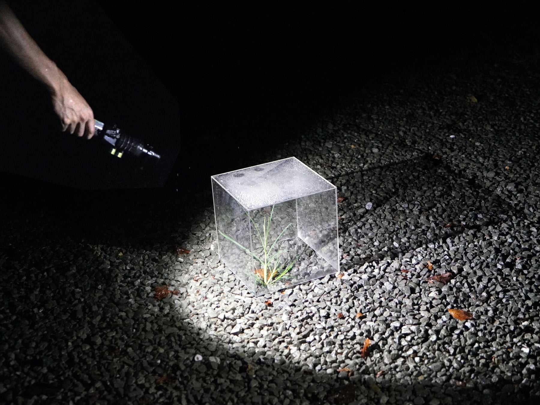 手持ちタイプのステレオライト™️で、様々なオブジェを照らし、迫り来る影を探索する広場。