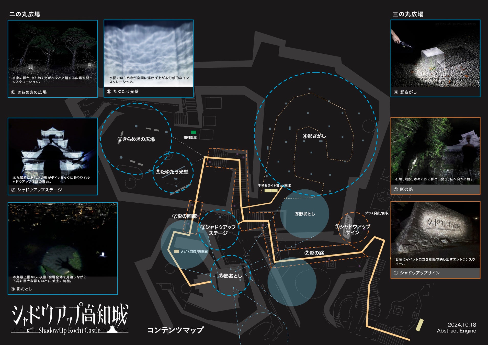 アブストラクトエンジンは、2024年12月6日から2025年1月13日まで高知城・高知公園で行われる「シャドウアップ高知城」の企画・体験デザイン・制作を行います。