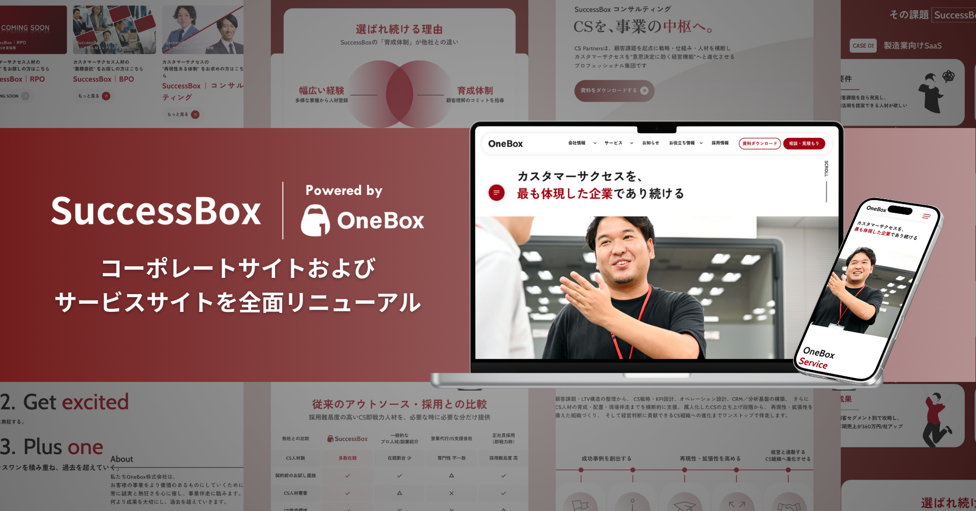 カスタマーサクセス(CS)領域に特化した人材支援サービス「SuccessBox(サクセスボックス)」を手掛けるOneBox株式会社(本社:東京都渋谷区、代表取締役社長:伊藤直樹、以下「OneBox」)は、サービスリリースから1周年を迎え、このほどコーポレートサイトおよびサービスサイトを全面リニューアルいたしました。