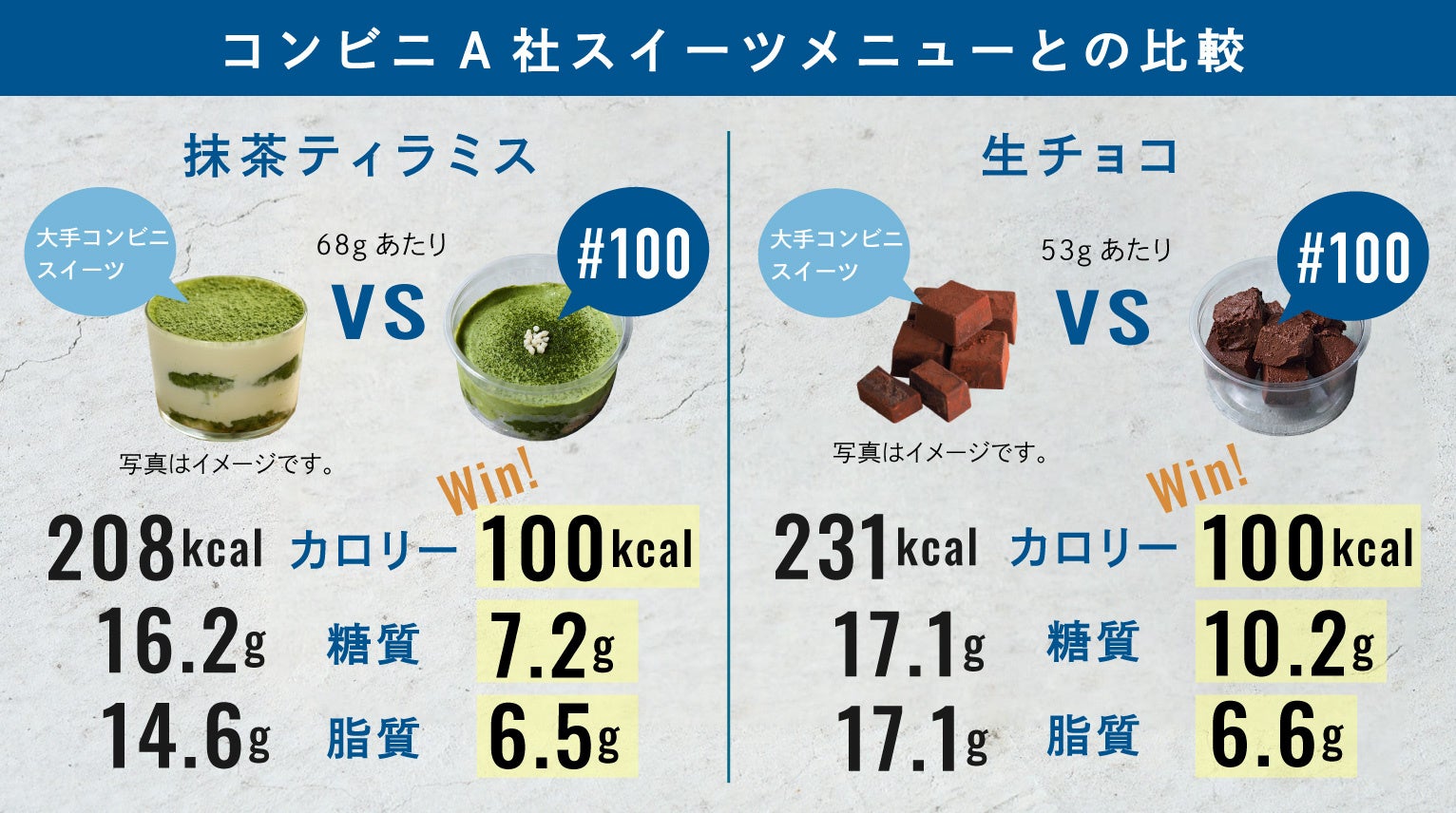 #100なら罪悪感少なく召し上がっていただけます!