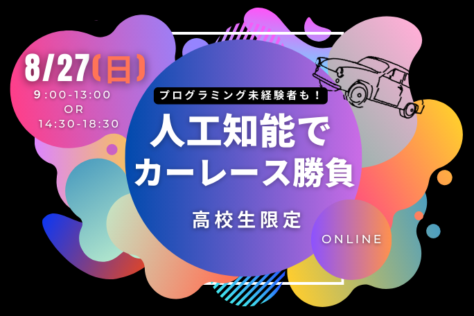【募集開始】高校生限定のAI夏休みイベント「人工知能でカーレース勝負」
