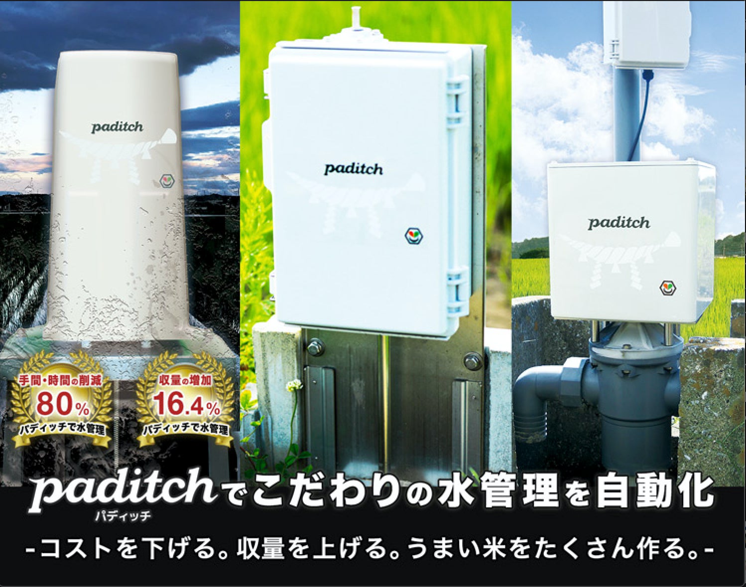 主力製品として水稲栽培で一番作業時間のかかる水管理をDX化し、超省力化する『paditch(パディッチ)』の開発・販売を行っています。