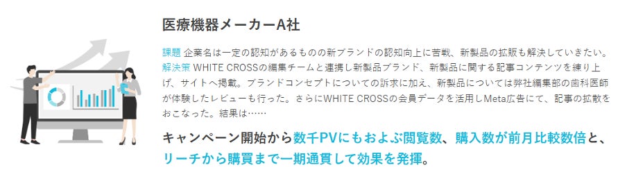 歯科医療情報プラットフォームのWHITE CROSS株式会社(本社:東京都渋谷区 代表取締役社長:赤司征大)は、2025年1月27日(月)、マーケティング・プロモーションサイトをリニューアル公開いたしました。