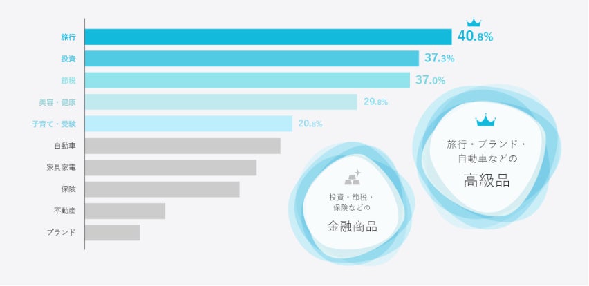 WHITE CROSSに登録している歯科医師会員に、興味のある分野についてのアンケート調査を行ったところ、1位:旅行 2位:投資 3位:節税 という結果になりました。