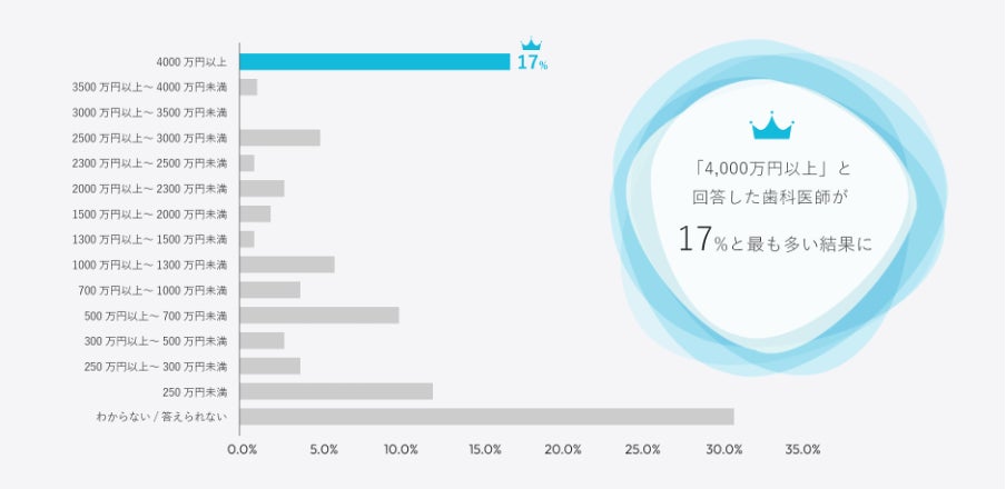 また全国の歯科医師100名に対し、無差別に“⾦融資産保有額のアンケート調査を実施した結果、金融保有資産額が4,000万以上の方が最も多い結果となりました。