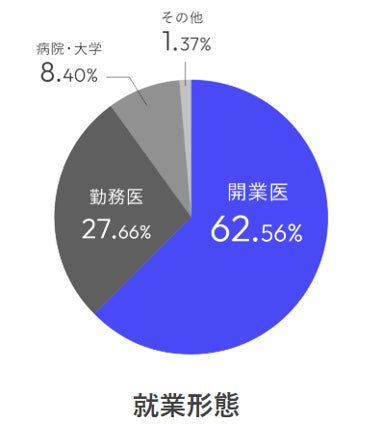 また弊社の歯科医師会員は、日本の歯科医師の開業医・勤務医の比率と同程度となっております。開業医の割合が60%以上と経営者が、多く利用しております。