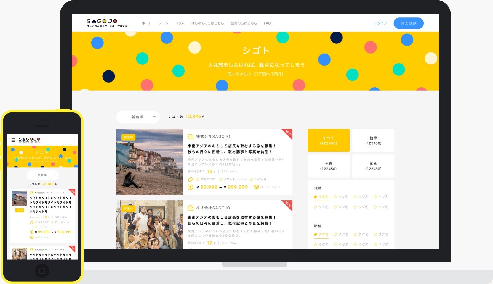 SAGOJO社は、「旅 × シゴト」をコンセプトに、観光促進や移住/関係人口の創出を目指す地域(地方自治体や企業など)と、地域活性化に貢献したい人材 をマッチングする人材プラットフォーム『SAGOJO(サゴジョー)』を運営する企業です。
