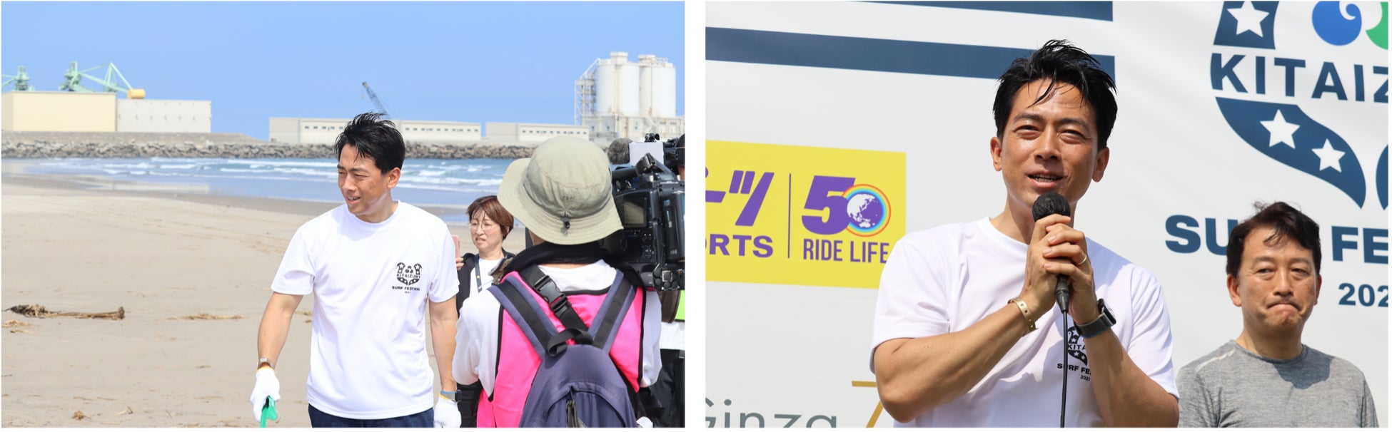 また同日には、イベントアンバサダーである小泉氏も北泉海岸に訪れ、ライブ配信出演や、一般参加者とともにビーチのクリーンアップ活動を実施。小泉氏の参加は、サーフィンへの熱い想いを示すものでした。小泉氏へのインタビュー内容をご紹介いたします。