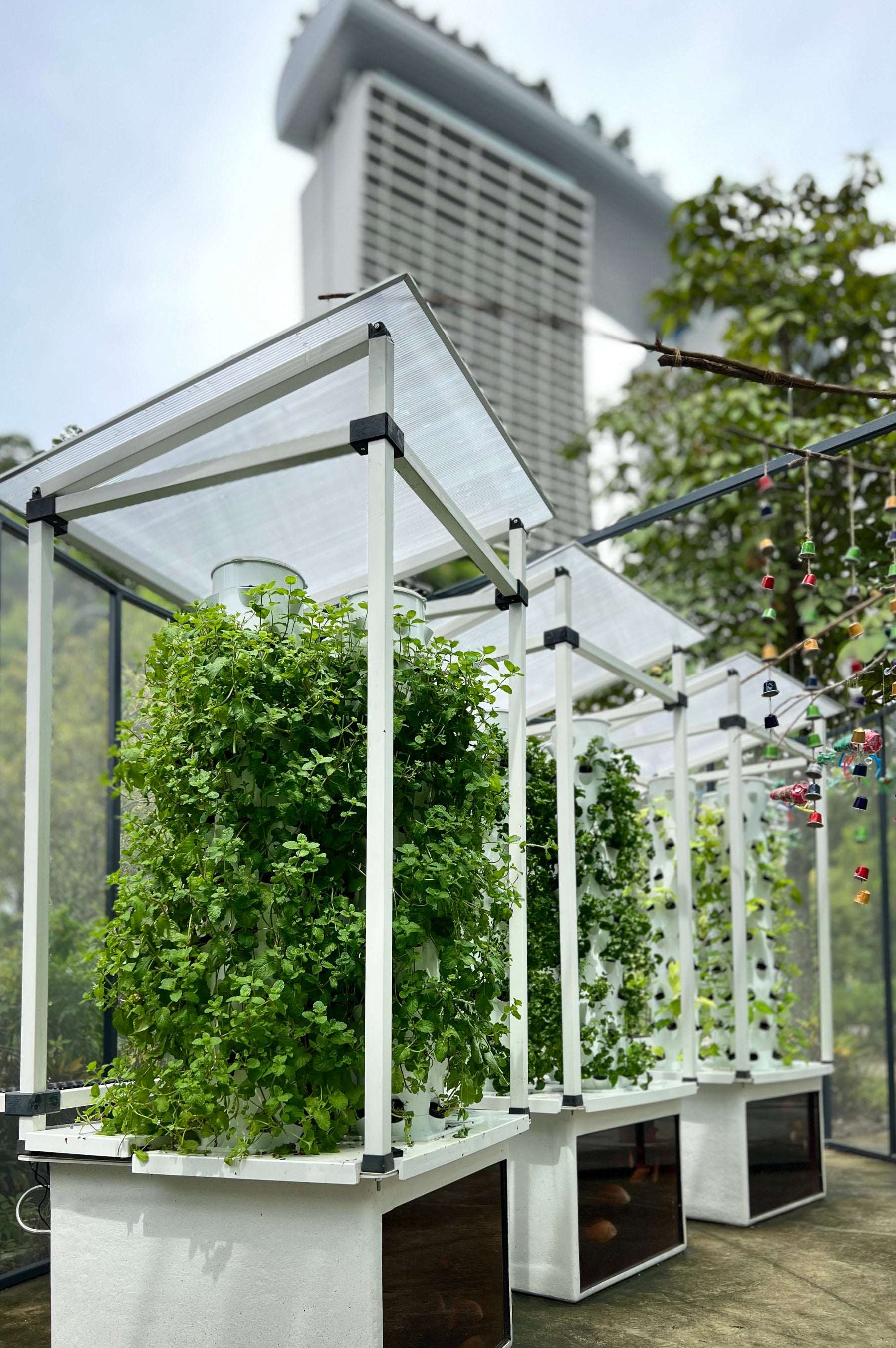 1. タワー型アクアポニックスキット「CUBE(キューブ)」の実演展示