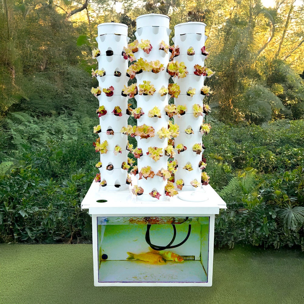 省スペース(1平米)で高い生産効率を実現できるアクアポニックスキットです。フィルター内蔵タイプで見た目もすっきりとしており、エントランスや店舗の空きスペースの有効活用に最適です。魚を飼育しながら、レタスなどの葉物野菜やハーブ類を栽培できます。分解しやすく、清掃しやすい構造のため、メンテナンスも容易です。