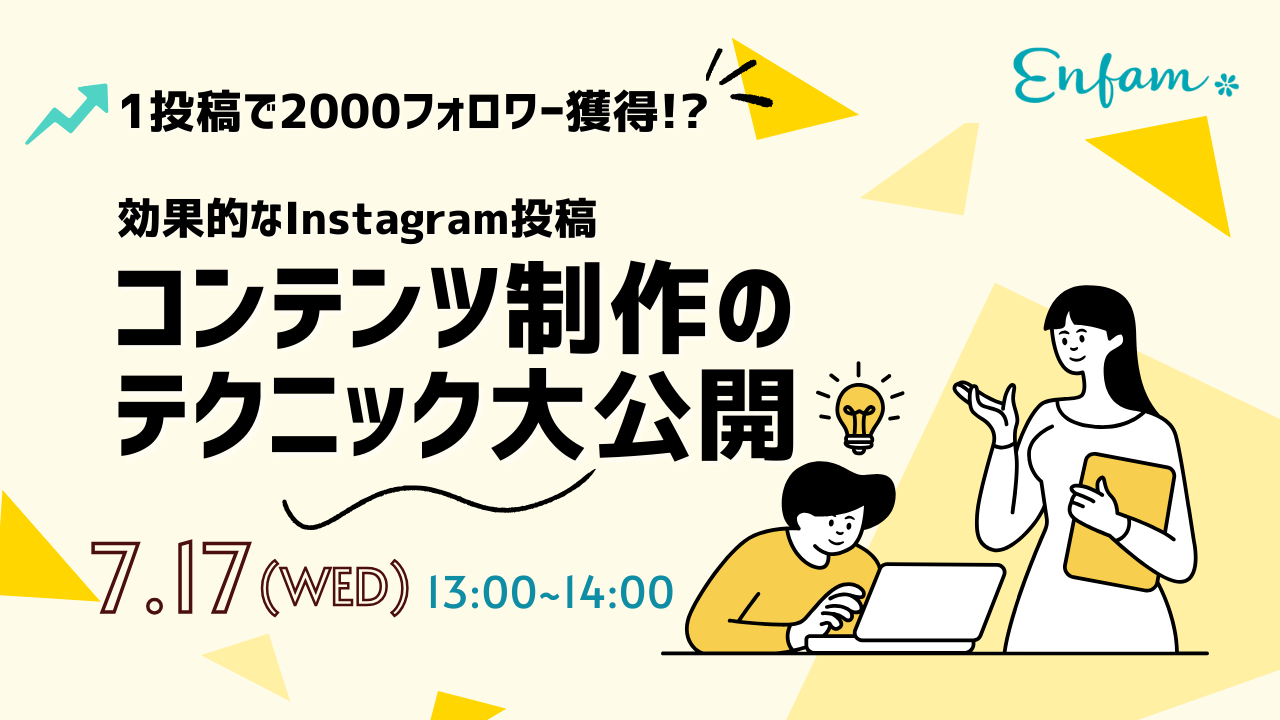 「【1投稿で2000フォロワー獲得?!】効果的なInstagram投稿コンテンツ制作のテクニック大公開セミナー」開催
