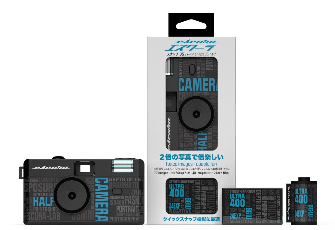 “2枚1セット”のストーリー溢れるレトロな写真が撮れるフィルムカメラ「Escura snaps 35 half (エスキュラスナップ35ハーフ)」
