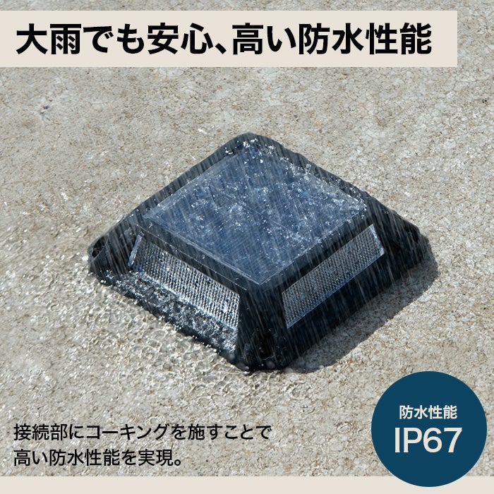 接続部分をコーキングを施し、隙間を減らすことで、防水性能IP67を実現。雨の日でも安心してご使用いただけます。