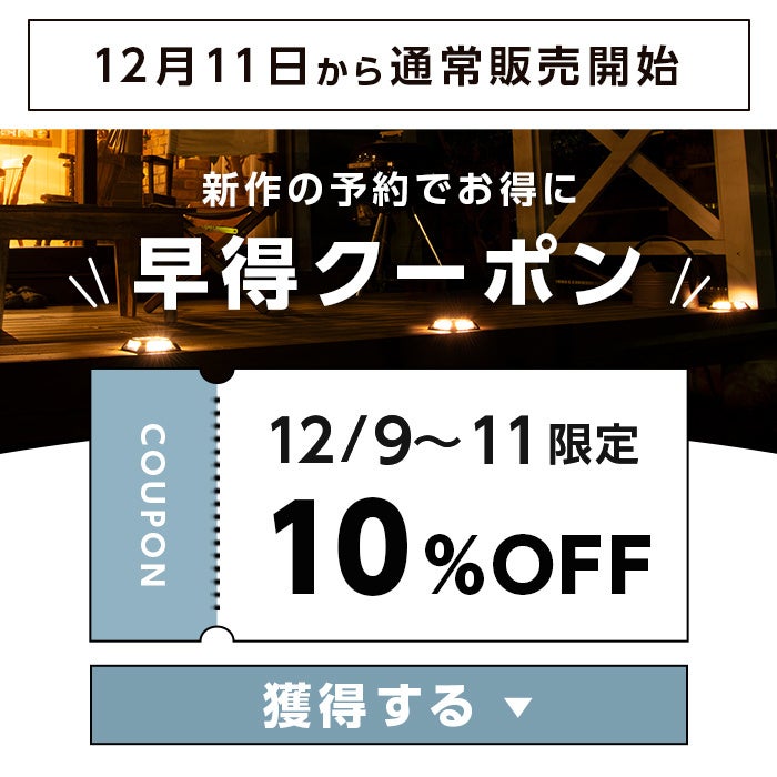 2023年12月9日(土)~12月11日(月)の期間限定でお得に予約できる「早得クーポン」を楽天市場にて配布中!通常価格より10%OFFでお求めになれます。