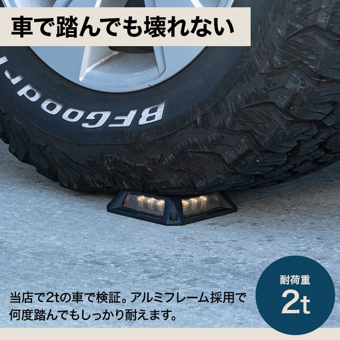 2tまで耐えられる高耐久性。車で踏んでも壊れないから、駐車場に置いても気兼ねなく使用できます。