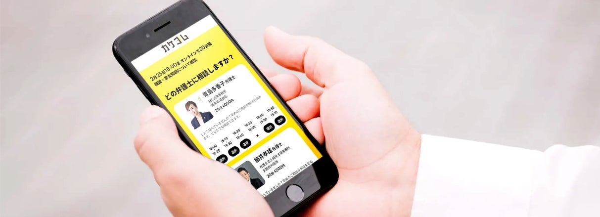 「カケコム」弁護士ネット予約は、生活者が本当困っている時に弁護士に今すぐネット予約ができて、気軽に、明朗会計で相談できるサービスです。