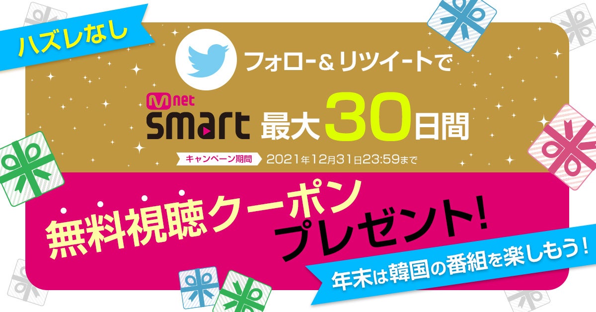 年末年始はMnet Smartで楽しもう!CJ ENM Japan株式会社がハズレなしで無料視聴クーポンがもらえるTwitterインスタントウィンキャンペーンを実施