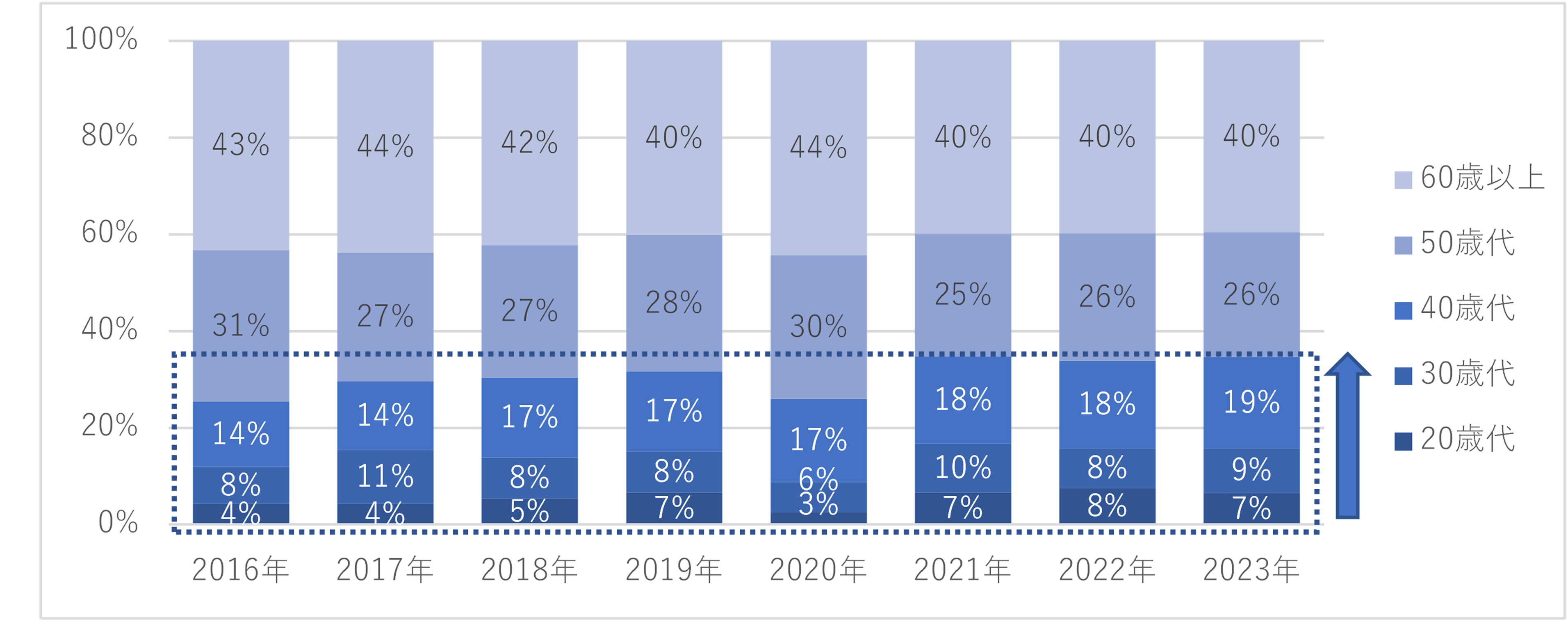 若い方ほど読めない傾向は続くものの、50歳以上の正答率が低下傾向にある一方で、全正答者の1/3以上を50歳未満が占め実数でも増加するなど、一部年代ではこの8年間で改善の傾向も見られました。