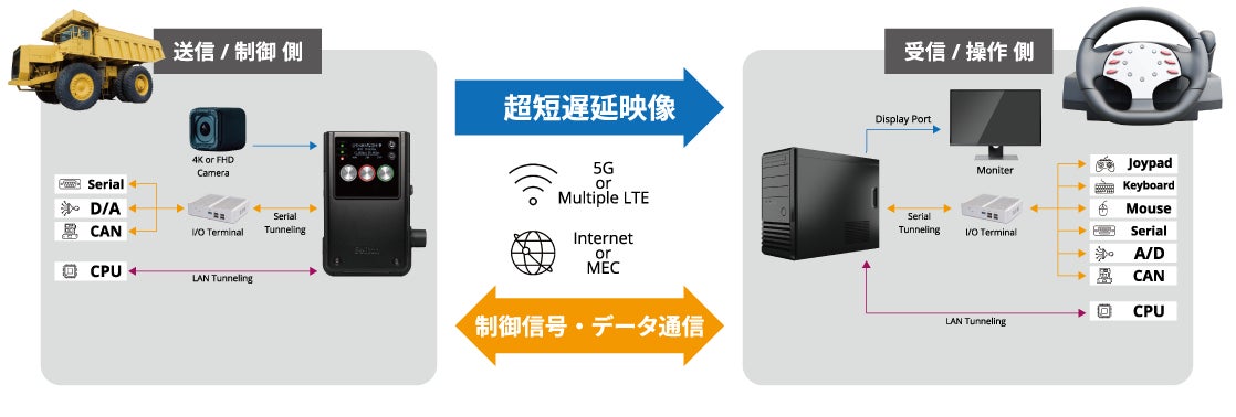 Zao-XとRASCOW2は、映像・音声だけではなく、制御信号を重畳させ伝送することが可能になっています。超短遅延映像伝送と制御信号の重畳、これにより昨今注目されている「遠隔操縦」への活用も一段と期待されます。