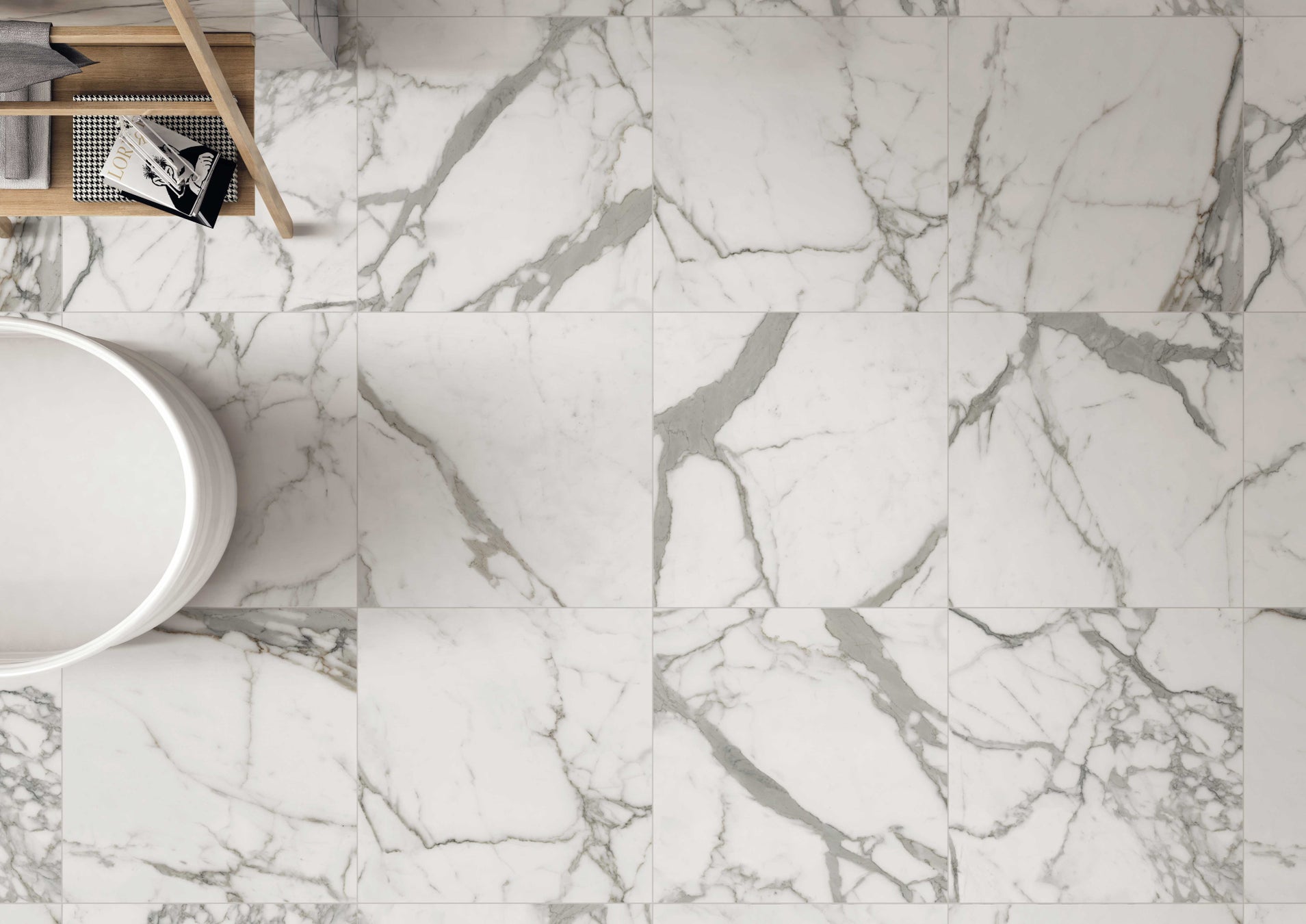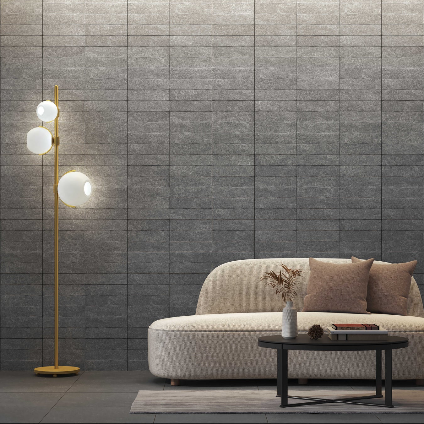 大理石5種、スレート1種を展開。高さの異なる2パターン(約37mm幅/約12.5mm幅)を揃えました。凹凸が創り出す奥行きのある表情は、空間に圧倒的な高級感と気品を演出します。